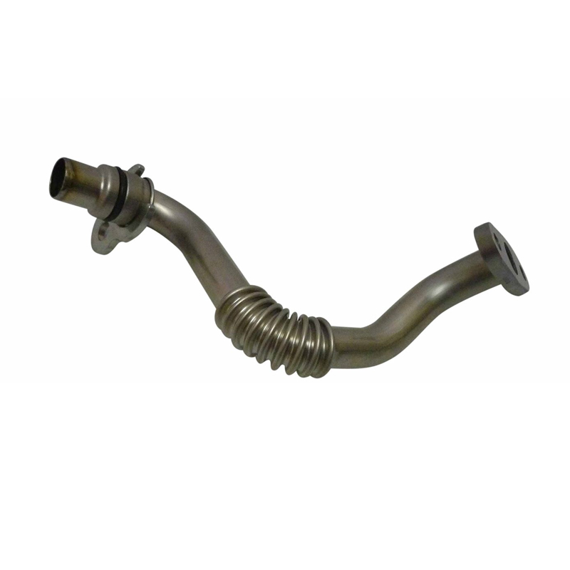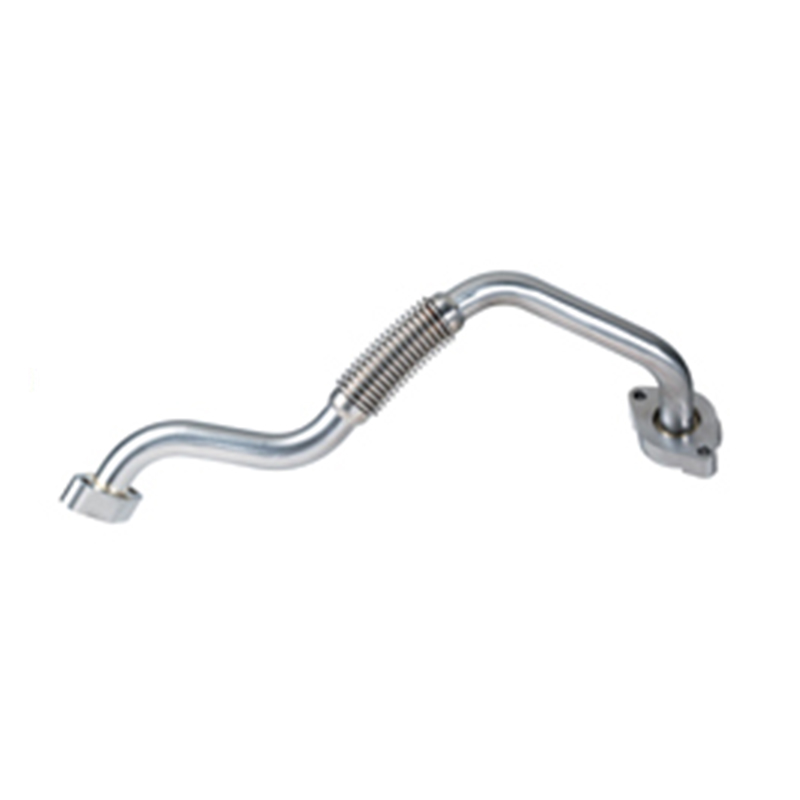 Turbocharger oil drain lines which incorporate metal bellows provide a ready to install assembly that is leak tight and suitable for high temperatures. They offer a substantial cost savings over multi part assemblies with non-metallic flexible elements as a result of the labor savings during installation.